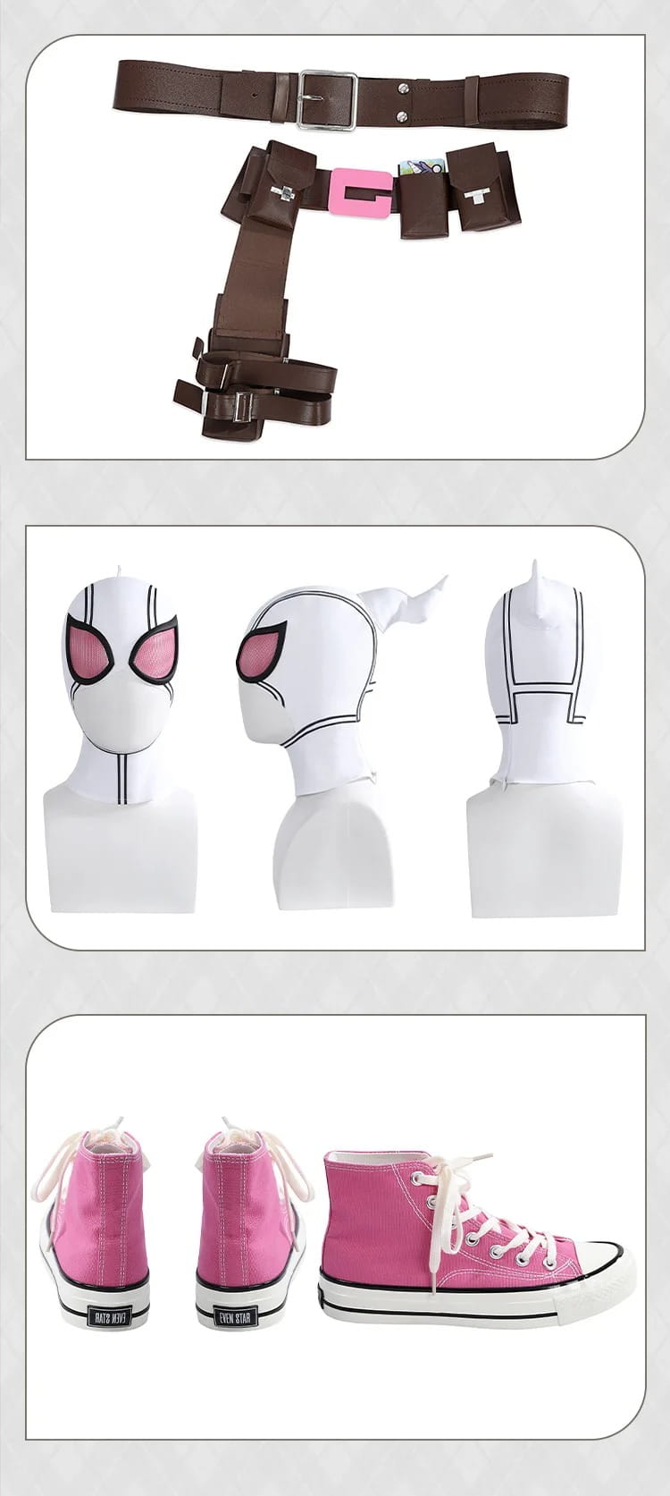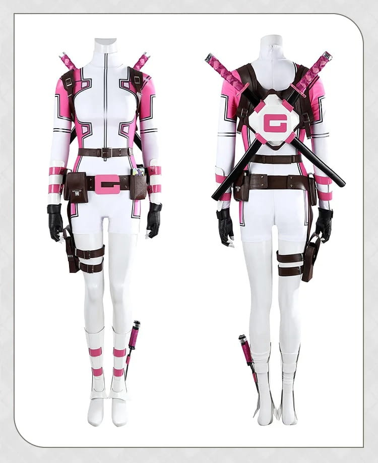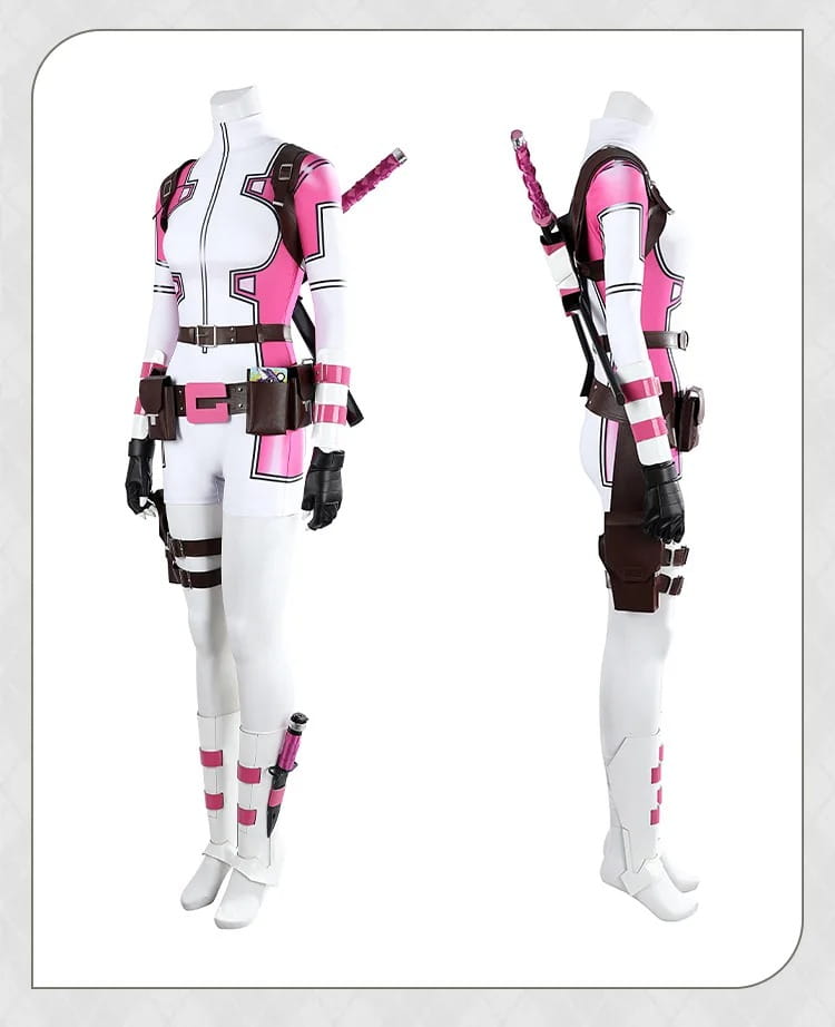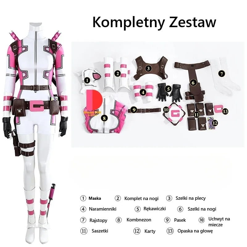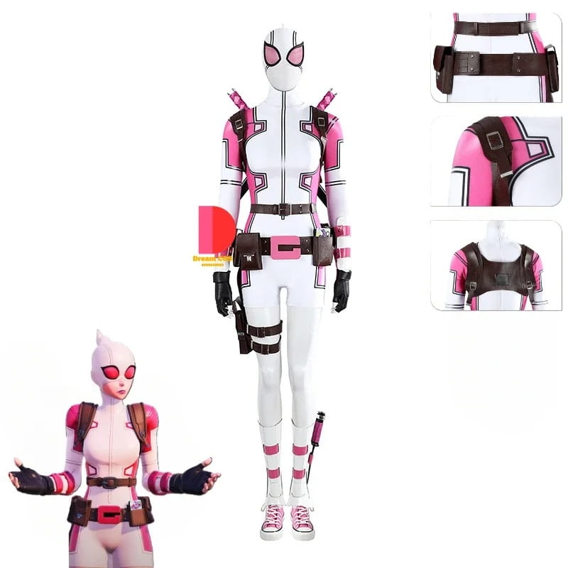 Pełny zestaw cosplayowy Gwenpool – idealnie odwzorowany strój znany z komiksów Marvela.