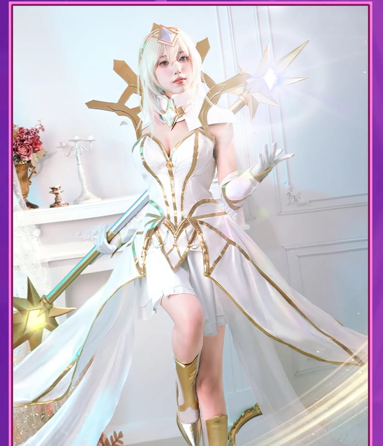 Ten strój przenosi kultową bohaterkę w jej najbardziej mistycznym i olśniewającym wydaniu. Biel, złoto i subtelne zdobienia sprawiają, że całość wygląda niczym magiczna sukienka prosto z pola bitwy i sceny jednocześnie. Idealny dla fanów, którzy chcą poczuć się jak prawdziwa gwiazda konwentu.