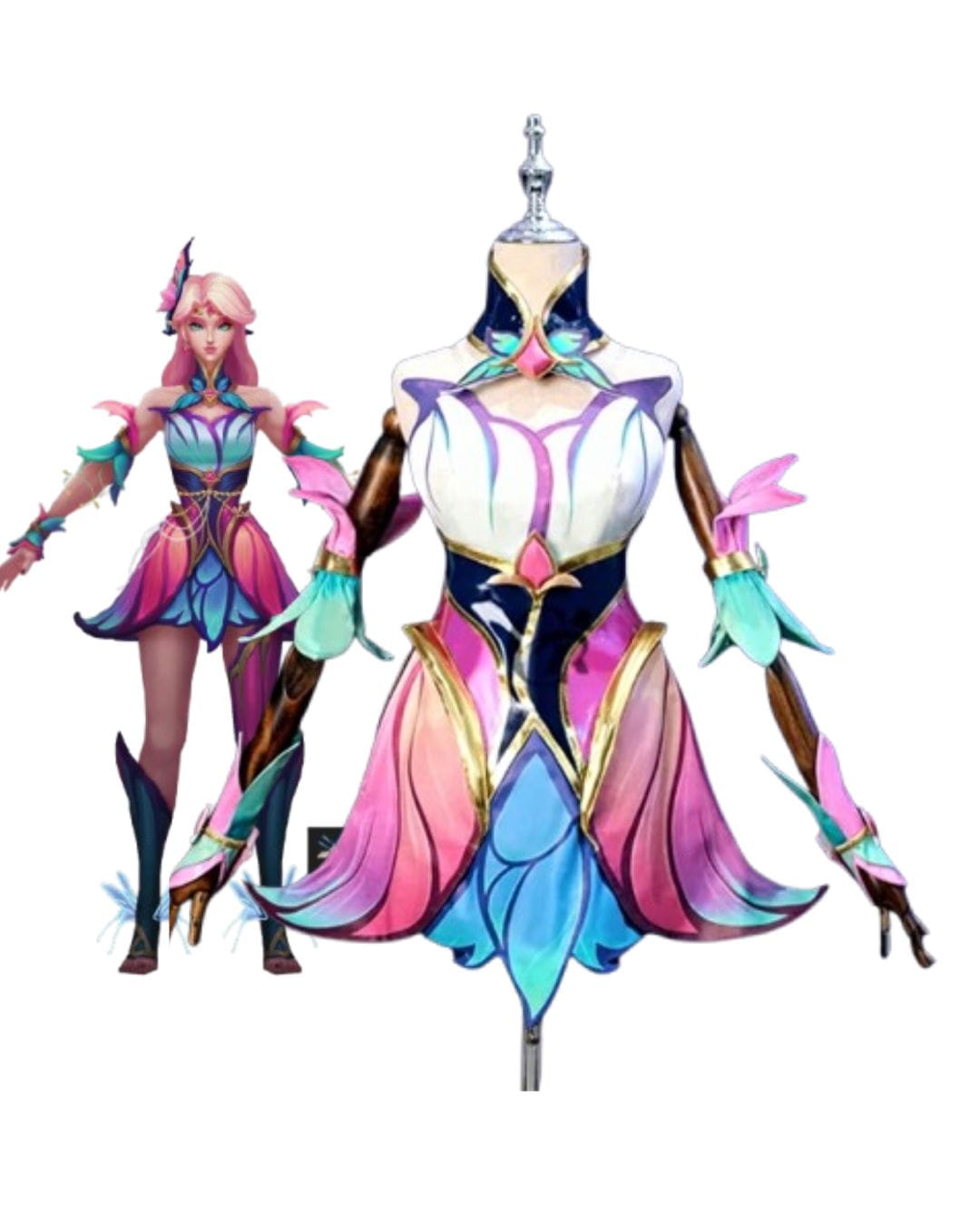 Magia i wdzięk – Lux w wersji Faerie Court to połączenie uroku, lekkości i baśniowego blasku. Strój zachwyca pastelowymi kolorami, mieniącymi się materiałami oraz detalami inspirowanymi naturą i światem wróżek. To idealna propozycja dla osób, które chcą wcielić się w magiczną, pełną światła bohaterkę.