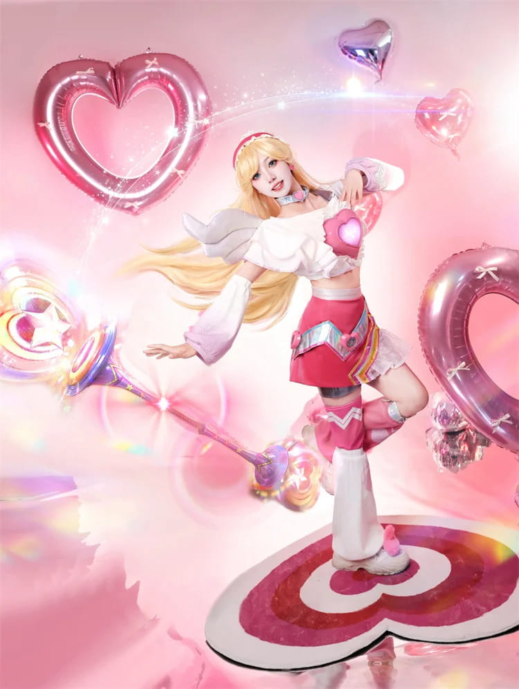 Ten cosplay to prawdziwa gratka dla fanów Lux i tematycznych skórek walentynkowych. Połączenie różu, bieli i pastelowych akcentów nadaje strojowi uroku i lekkości. Charakterystyczne serduszka i błyszczące detale od razu przyciągają uwagę, sprawiając, że strój prezentuje się niezwykle efektownie.