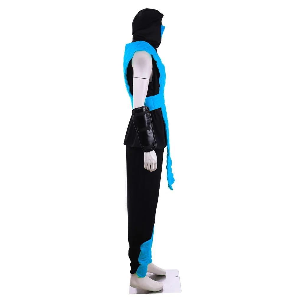 - Autentyczny design: Kostium wiernie odwzorowuje strój Sub-Zero z serii Mortal Kombat, zawierający charakterystyczny niebiesko-czarny pancerz oraz maskę ochronną. Każdy detal, od pasa po ochraniacze na ramiona, został starannie dopracowany, aby oddać surowy styl wojownika.