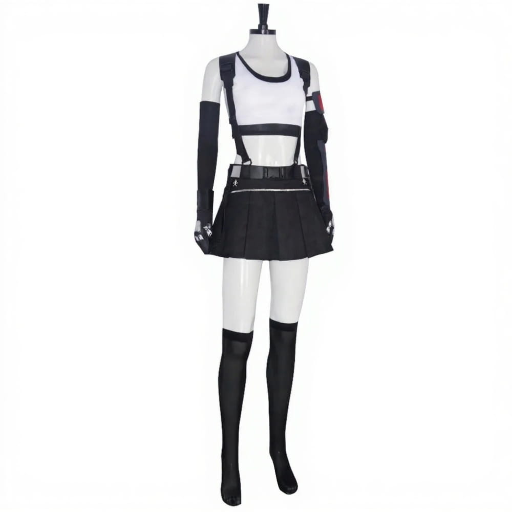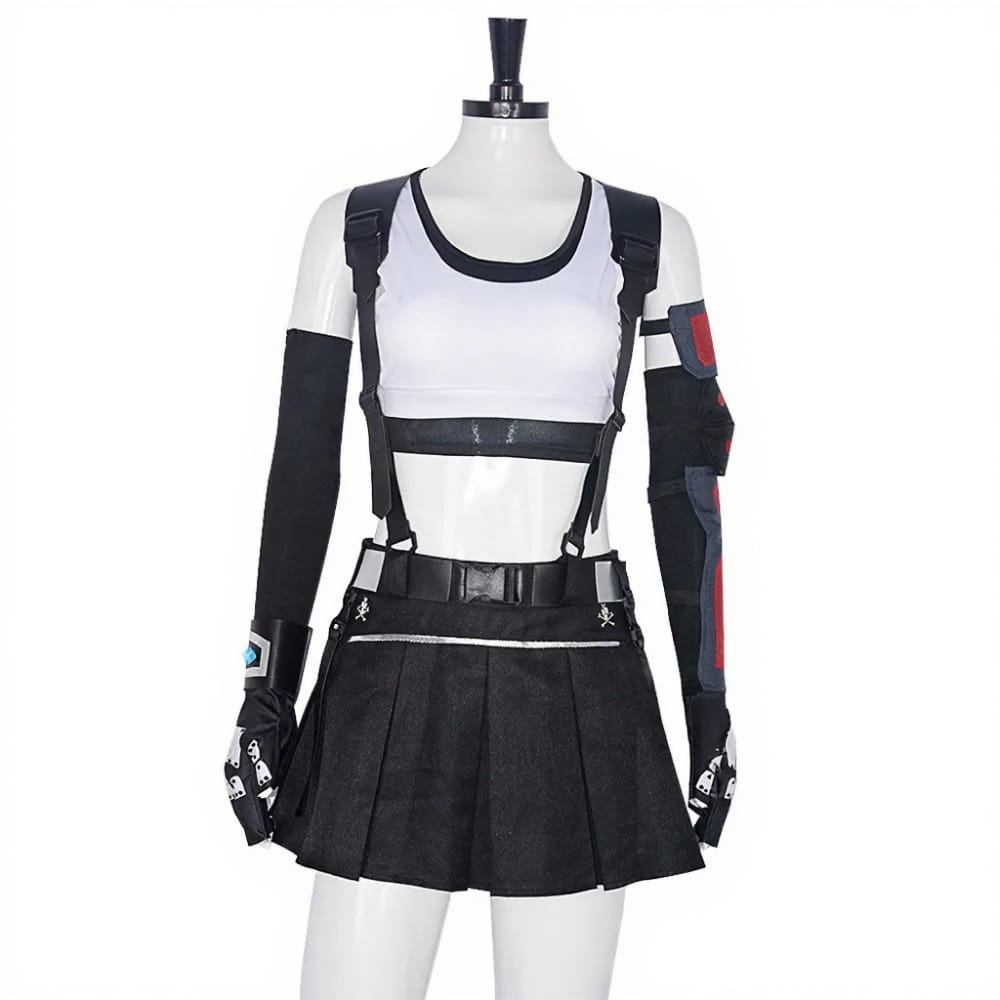 Realistyczny kostium Tify Lockhart z Final Fantasy VII – kompletny zestaw z topem, spódniczką, rękawicami i paskami. Wygodny, stylowy i wierny oryginałowi.