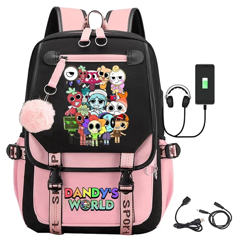 Ten plecak to nie tylko praktyczny wybór na co dzień, ale też prawdziwe show popkulturowe. Na froncie znajdziesz najbardziej rozpoznawalne postacie z gry Dandy’s World – od Dandy’ego po jego przyjaciół i najdziwniejszych przeciwników. To plecak, który od razu pokazuje, że jego właściciel zna się na grach i ma świetny styl.