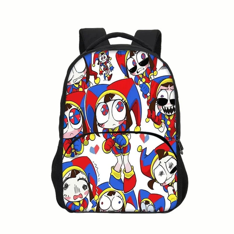 Jeśli uwielbiasz Pomni i jej przesadnie ekspresyjny styl bycia, ten plecak jest stworzony właśnie dla Ciebie. Cała jego powierzchnia to kolaż najróżniejszych emocji tej postaci – od paniki, przez zaskoczenie, aż po czyste cyfrowe szaleństwo. Styl graficzny nawiązuje do estetyki internetowego fanartu i komiksów, co sprawia, że plecak wygląda jak wyjęty prosto z animowanej sceny.
