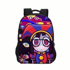 Ten plecak to idealna propozycja dla fanów ciemniejszej strony „The Amazing Digital Circus”. Na froncie znajduje się Pomni – zamyślona, zdezorientowana, a w tle wiruje cybernetyczna kakofonia barw, dziwnych oczu i kształtów. Całość wygląda jak wyjęta z sennego koszmaru albo błędu w programie, co świetnie pasuje do klimatu serialu.