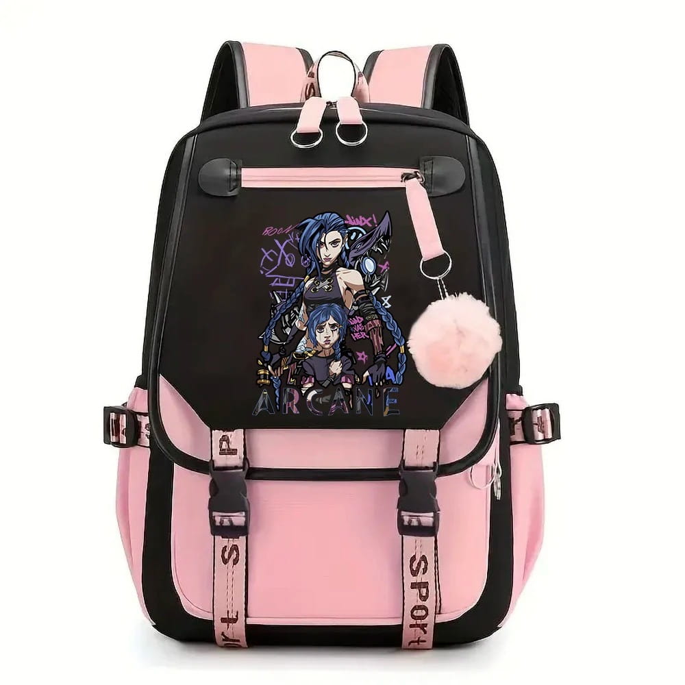 Ten plecak to czysta energia z ulic Zaun! Z nadrukiem przedstawiającym Jinx i Vi – siostry z serialu Arcane oraz gry League of Legends – ten model przypadnie do gustu każdemu, kto zna emocje i konflikty tej legendarnej historii.
