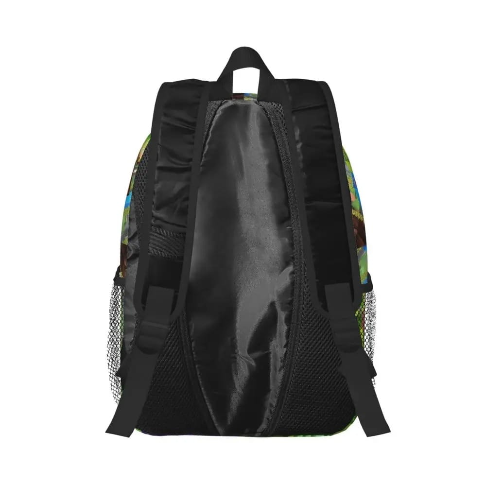 Z przodu plecaka znajduje się dynamiczna scena z dodatku – Steve wspinający się na ametysty, kolorowa dżungla, świetliste jaskinie i widok, który aż prosi się o przygodę. Plecak nie tylko wygląda świetnie, ale jest też wygodny i praktyczny – z siateczkowymi kieszeniami po bokach i pojemną komorą główną.